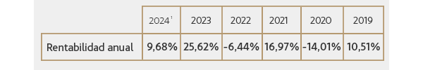 1.Rentabilidades pasadas no garantizan rentabilidades futuras. Datos calculados a fecha del valor liquidativo del 28/5/24.