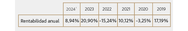 Bestinver Bolsa FI cuenta con una rentabilidad anualizada a 3 años del 8,94% y a 5 años del 6,72%, siendo su histórico de rentabilidades en sus últimos 5 años: