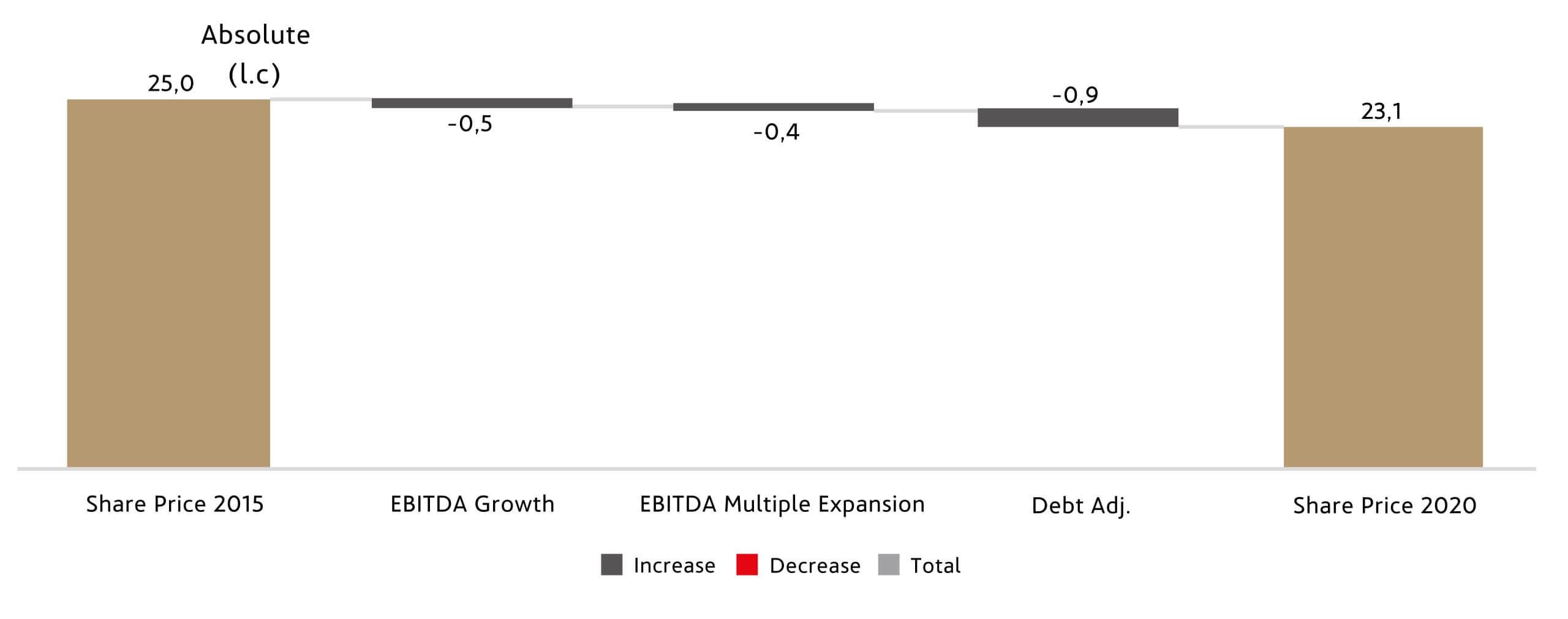 Estas dinámicas cambiaron radicalmente durante los 5 años siguientes. Entre 2015 y 2020, la evolución de los resultados del negocio y de la prima con la que cotizaban sus acciones tuvieron un comportamiento menos estelar.