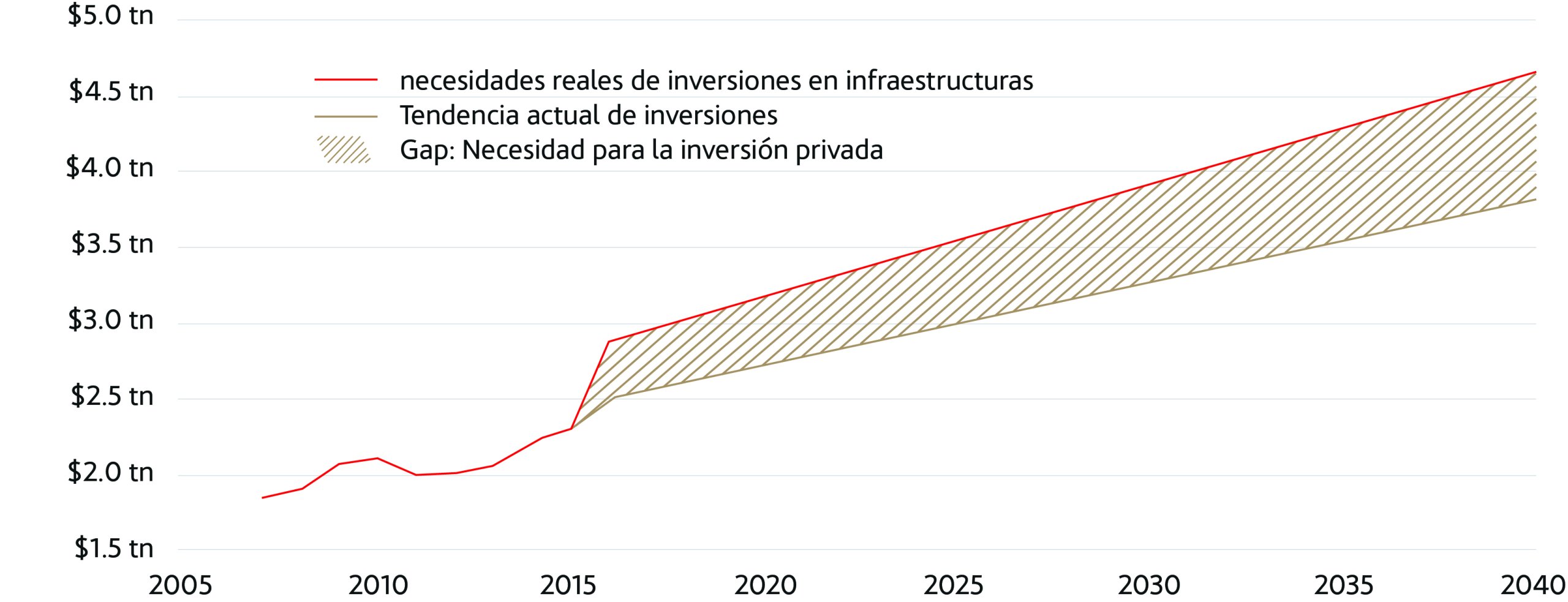 Gap entre inversiones públicas y privadas [Fuente: Global Infraestructure Hub | Oxford Economics]