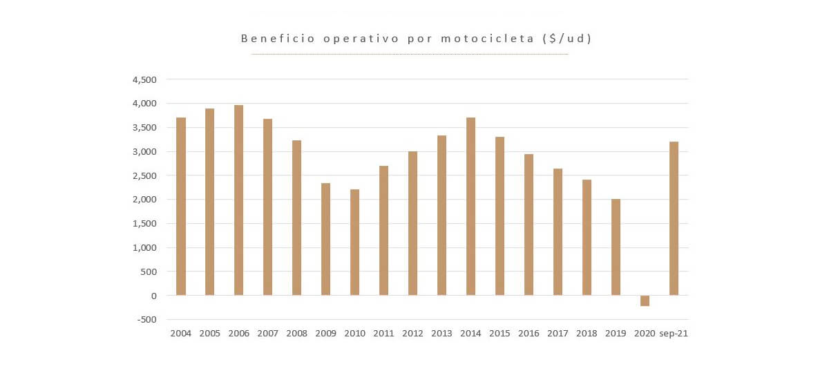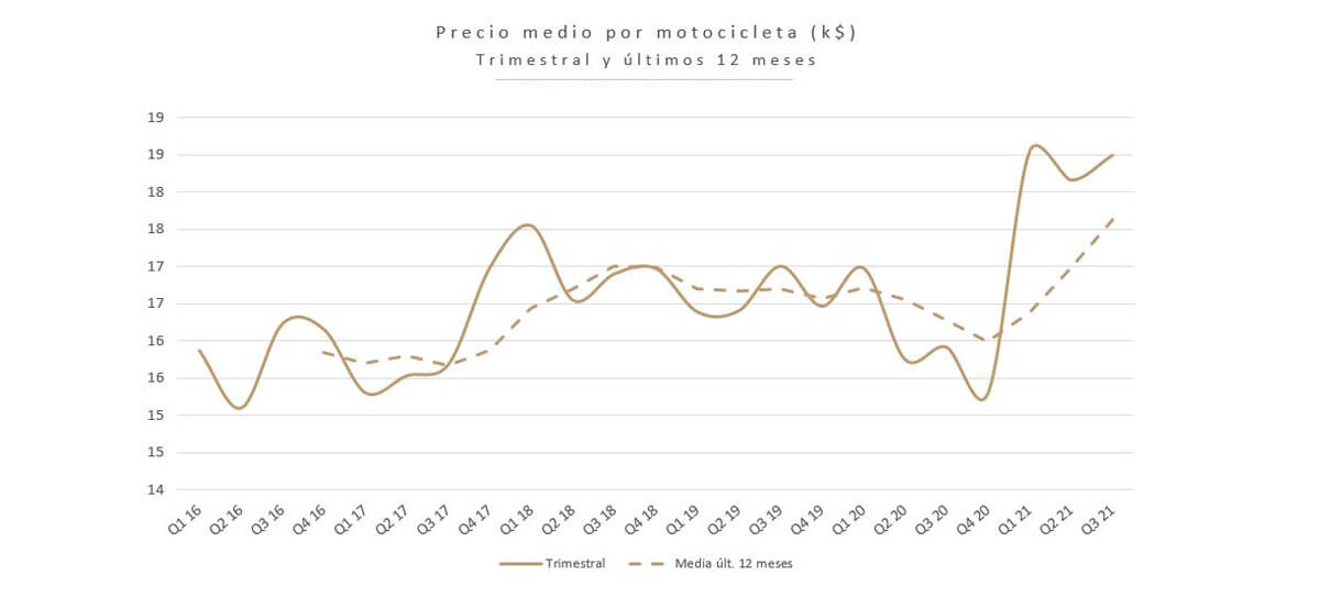 Estas medidas que indicamos también están teniendo su efecto en el precio medio de venta de sus motocicletas, como pueden observar en el siguiente gráfico.