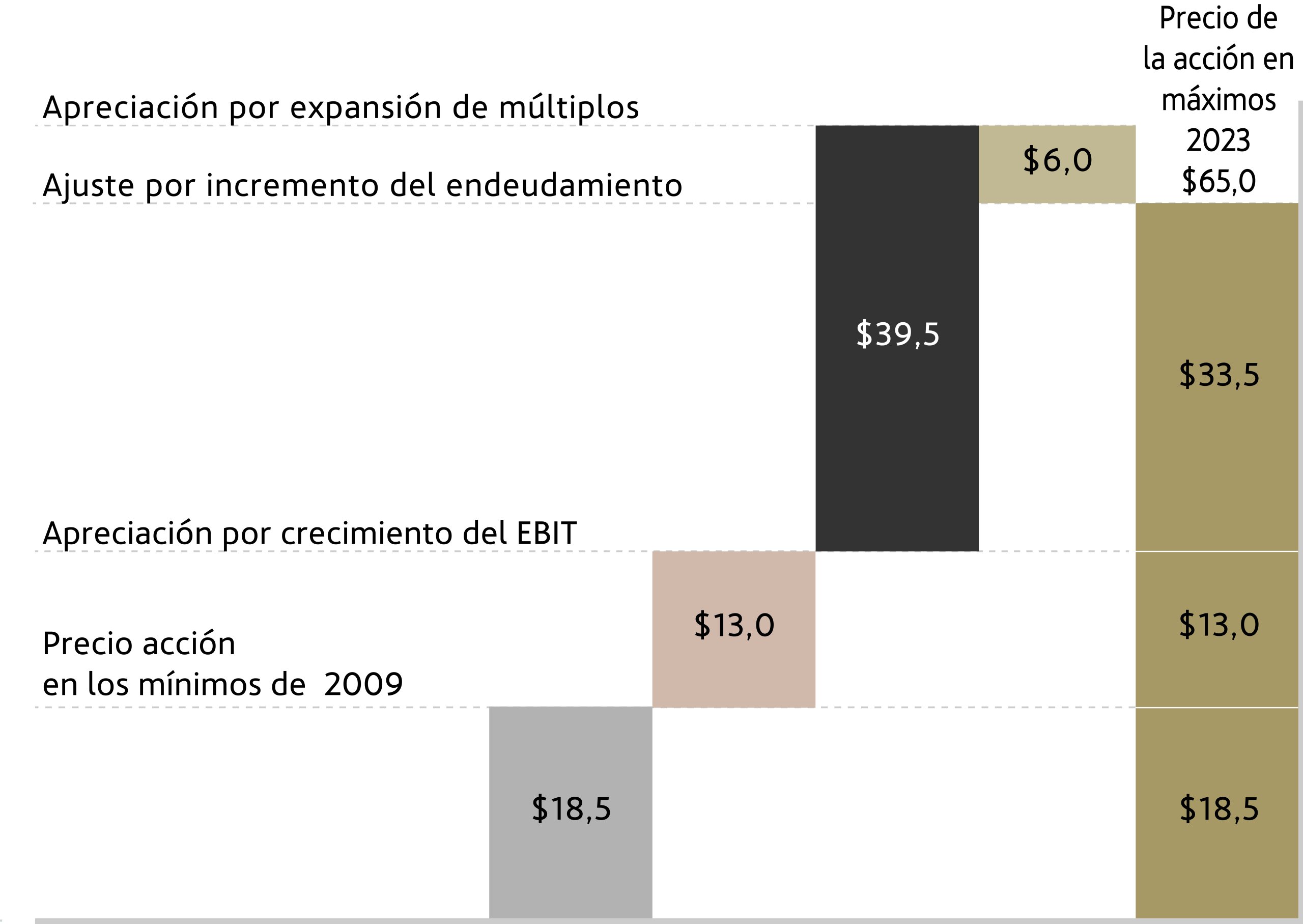 Respecto a su acción, desde los mínimos de 2009 a los máximos de 2023 se apreció un 250%. Hay tres motivos que explican esta subida: la recuperación de la confianza en la economía y los mercados tras la Gran Crisis Financiera, el gran desempeño operativo del negocio y, sobre todo, los bajísimos niveles de valoración desde los que partían sus títulos. Estos bajos niveles de valoración permitieron una expansión de los múltiplos EV/EBIT desde las 10,5 veces hasta las 23,3 veces.